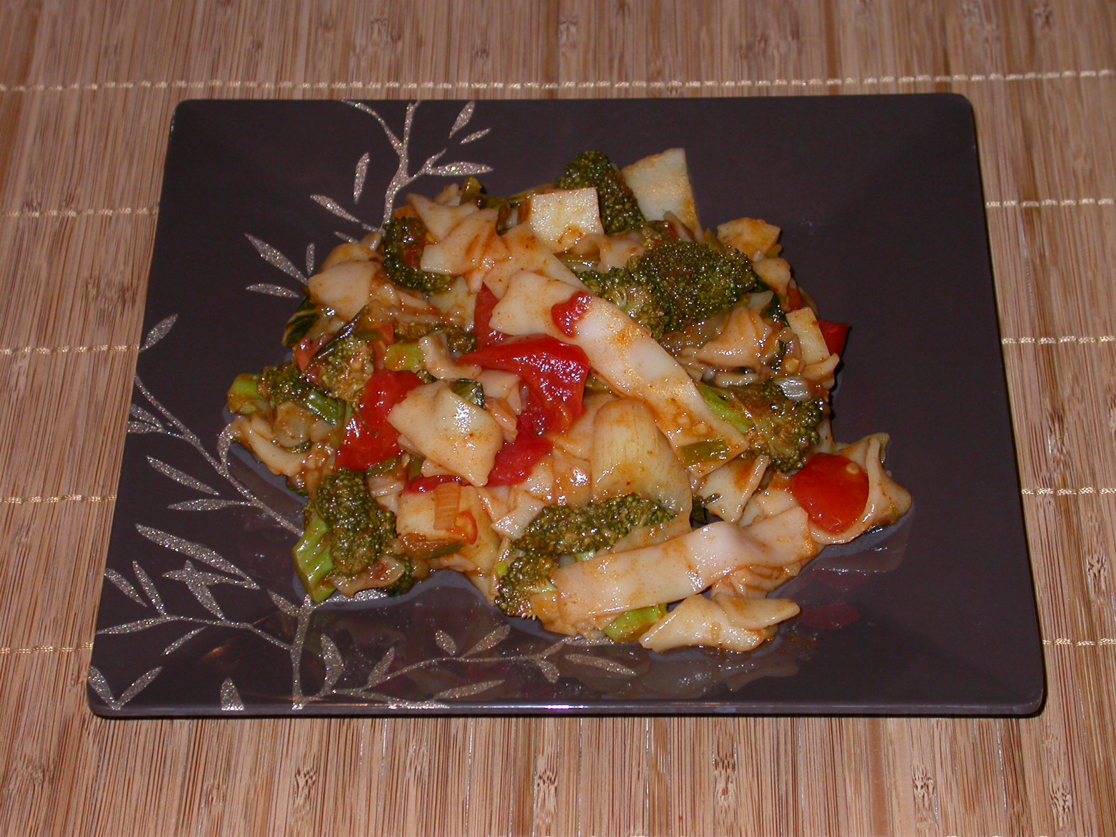 - Increase the heat and add the tofu and noodles and cook for another 2-3 minutes till the noodles and vegetables get glassy